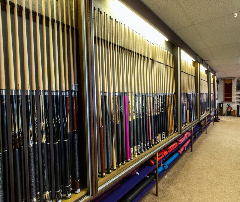 We stock, custom cues by: Predator, Viking, Mc Dermott, Joss, Schmelke, Cuetec and more. We also carry a variety of cue cases and we specialize in service by offering all types of cue repair.